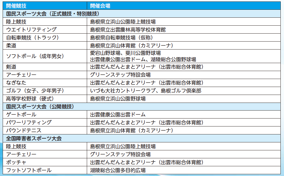 問合先:第84回国民スポーツ大会・第29回全国障害者スポーツ大会出雲市準備委員会事務局(文化スポーツ課内)