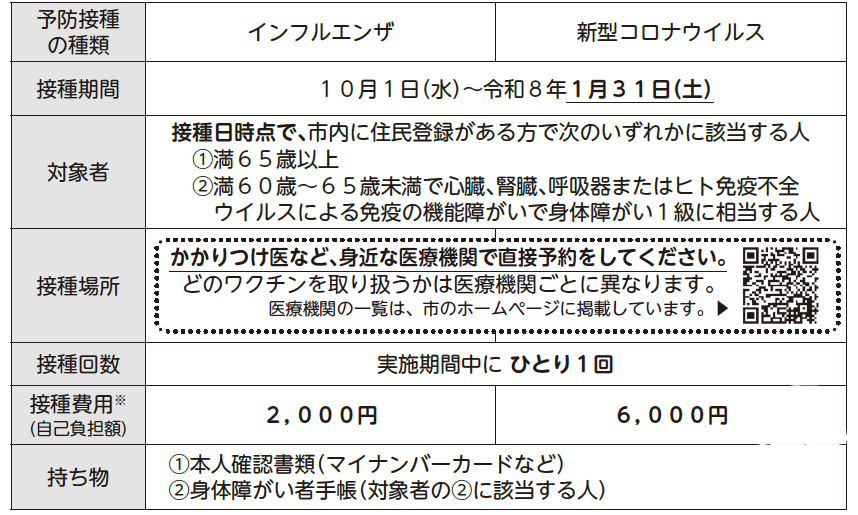 ※接種費用は医療機関の窓口でお支払いください。対象者のうち接種日に生活保護世帯の人は、申請により接種費用が免除になります。
