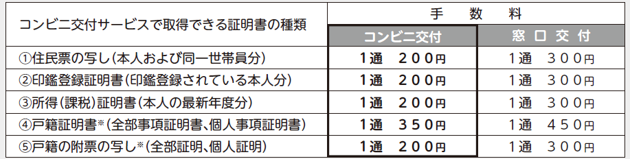 ■取得できる証明書及び手数料