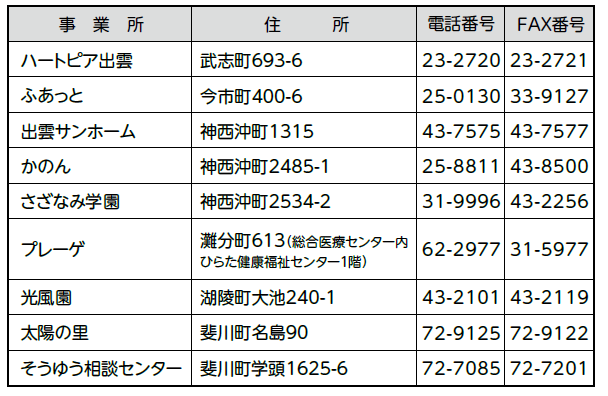 日常の生活や、日中の過ごし方についての困りごとは、福祉推進課、各行政センター市民サービス課または右記の相談支援事業所へご相談ください。