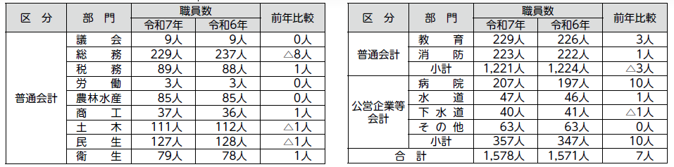 注…職員数は一般職の人数で、再任用職員等の短時間勤務職員は含まれていません。