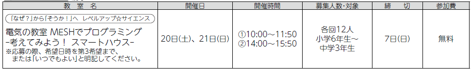 〔応募方法〕事前に申込みが必要です。電話、ハガキ、科学館ホームページ、FAX、科学館受付カウンターのいずれかでご応募ください。