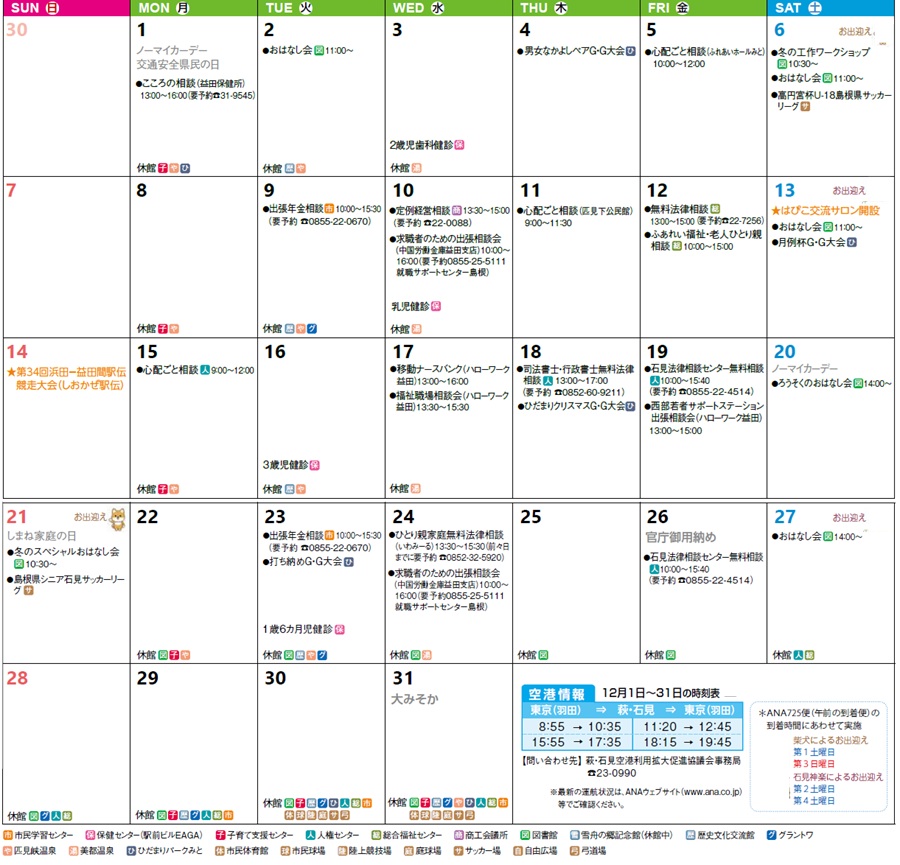 くらし ますだ 12月カレンダー 21/40 前の記事 次の記事 発行日 : 2025年12月01日 自治体名 : 島根県益田市 広報紙名 : 広報ますだ 令和7年12月号 ◆今月は固定資産税(3期)、国民健康保険税(7期)、後期高齢者医療保険料(6期)、介護保険料(7期)の納付月です。 Tweet シェアする 自衛官等募集 献血・健康相談・休日診療場所・当番薬局など