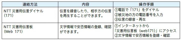 そのようなときに、次の方法により伝言や安否情報を家族などに知らせることができます。