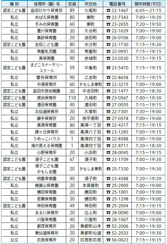 ・市子ども福祉課保育係(益田駅前ビルEAGA1階)【電話】31・1380