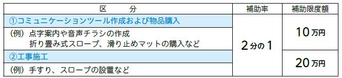 コミュニティ活動等を行う団体が、所有または通年で管理する施設に対して実施する「合理的配慮の提供」で、次の(1)(2)のいずれかに該当する場合、費用の2分の1の額を補助しています。