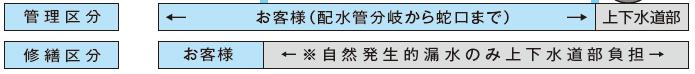 ただし、配水管分岐からメーター器2次側パッキンまでの自然発生的漏水については、一部公道等もあり個人対応が難しいため、上下水道部において原形復旧を基本に対処しています。なお、構築物の撤去や、植栽等の伐採等により特別に要した費用は個人負担となりますので、適切な管理をお願いします。