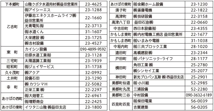 ■益田市水道事業指定給水装置工事事業者一覧表(令和7年10月現在)