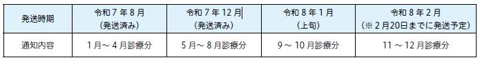 ※9~10月診療分および11~12月診療分は、令和6年度に比べ早い時期の発送となります。
