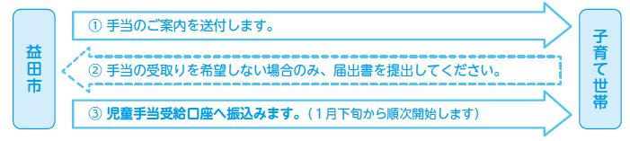 ・申請不要の方…令和7年10月支給時(令和7年9月生まれの児童については12月支給時)の児童手当受給口座へ振込みます。