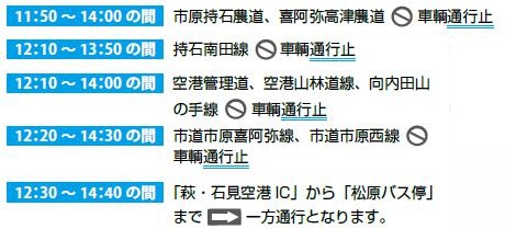 空港マラソン当日の交通規制についてお知らせします。コース周辺にお住まいの方にはご迷惑をおかけしますが、ご協力をよろしくお願いします。