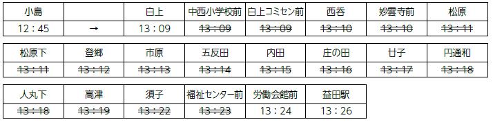 萩・石見空港マラソン全国大会当日の交通規制に伴い、下記の二重取消線部分の時間帯のバスは運休となります。ご迷惑をおかけしますがご協力をお願いします。