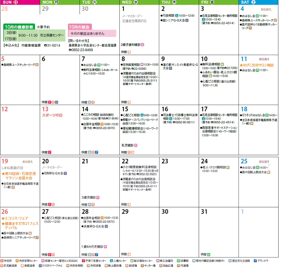 くらし ますだ 10月のカレンダー 18/36 前の記事 次の記事 発行日 : 2025年10月01日 自治体名 : 島根県益田市 広報紙名 : 広報ますだ 令和7年10月号 ◆今月は市県民税(3期)、国民健康保険税(5期)、後期高齢者医療保険料(4期)、介護保険料(5期)の納付月です。 Tweet シェアする 益田農業振興地域整備計画の全体の見直しに係る地区検討会の開催 空港情報・休日診療場所・当番薬局など