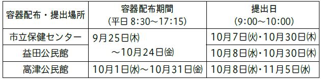 (1)容器配布期間に配布場所で容器を受け取ってください。