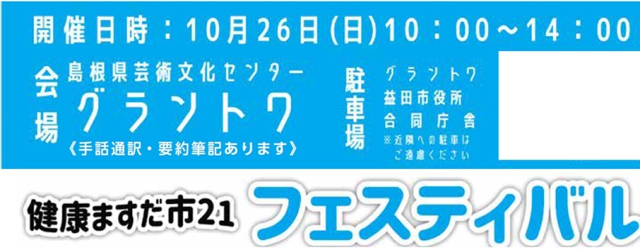 〒698-0024 益田市駅前町17-1 駅前ビルEAGA内 健康ますだ市21推進協議会 運動部会 事務局