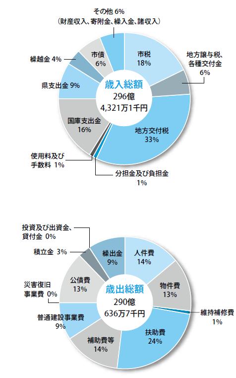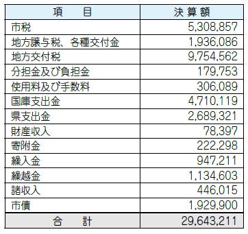 令和6年度一般会計決算額は、歳入総額296億4,321万1千円、歳出総額290億636万7千円、差し引き6億3,684万4千円の黒字となり、繰越事業の財源として翌年度に繰り越す財源(5,920万4千円)を控除した実質収支額は、5億7,764万円となりました。