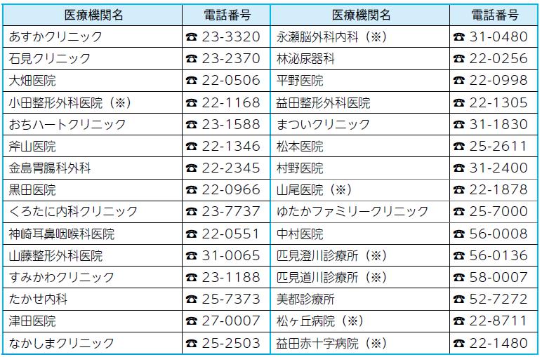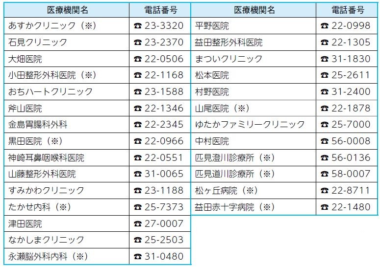 なお、一覧に掲載されていない医療機関でも、通院中の方に対しては接種ができる場合がありますので、まずはかかりつけ医にご相談ください。