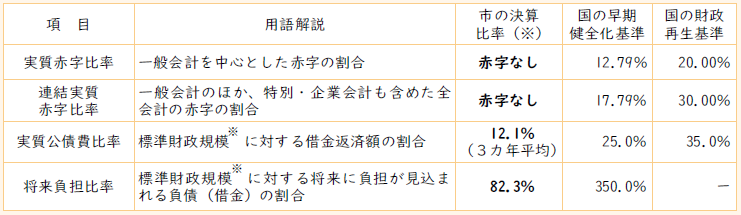 健全化判断比率(健全化を判断する数値)