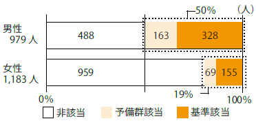 令和6年度安来市の特定健康診査では、メタボリックシンドロームやその予備群に該当する人が、男性50%、女性19%でした(下グラフ参照)。