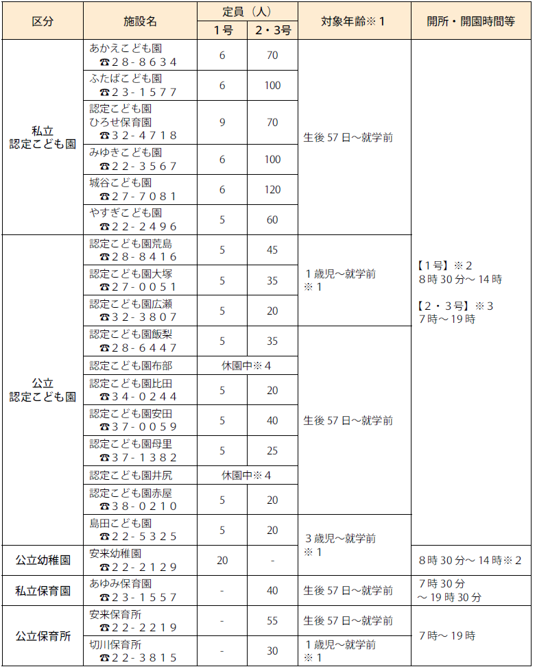 ※4 休園中の施設は、入園希望者が10人以上の場合に開園します。詳しくは子ども未来課へ問い合わせください。