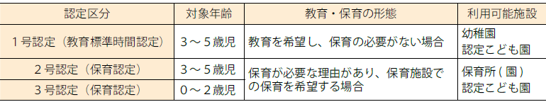 ■教育・保育施設利用のための3つの認定区分