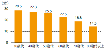 歯周病のある人は加齢と共に増加し、50~60代では歯を失う主な原因になっています。安来市でも、50歳代頃から残っている歯の数が減り始めています。重度の歯周病を放置すると、歯を失うだけでなく、誤嚥性(ごえんせい)肺炎や糖尿病、心疾患など、さまざまな病気のリスクが高まります。楽しく社会参加を続けるためにも、お口の健康と機能を守ることが大切です。