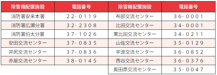 県道・国道の除雪…広瀬土木事業所【電話】32-2031
