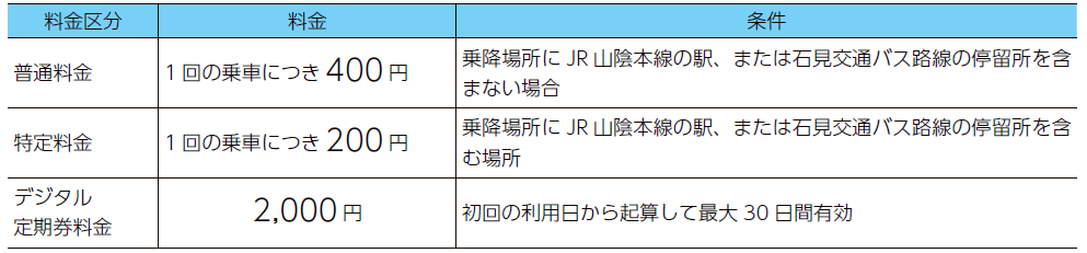 ■運賃(小学生は下記金額の半額、小学生未満の利用者は無料)