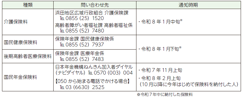 ・社会保険料を非課税年金から特別徴収(年金天引き)され、その納付額が必要な場合は、表の各問い合わせ先にご確認ください。