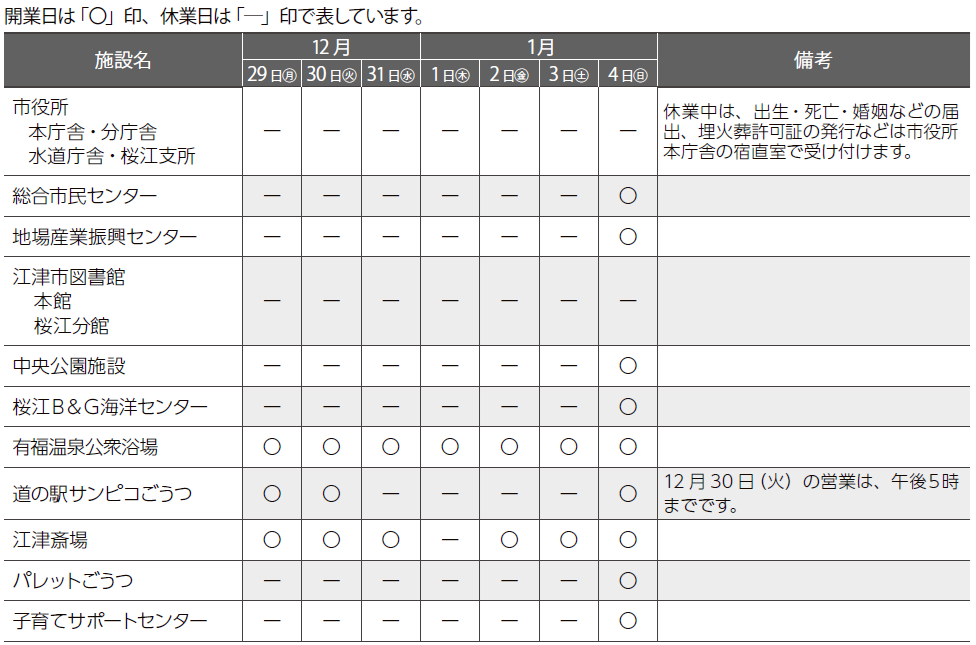 年始 江津地区1月5日(月)から、桜江地区1月20日(火)から