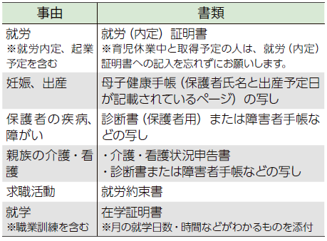現在、在園しており、来年度も継続して利用を希望する場合は次の書類の提出が必要です。