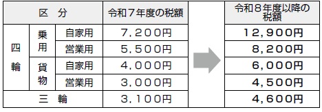 ◎令和8年度より重課となる軽自動車の税額(初度検査年月が平成24年4月から平成25年3月までの車両)