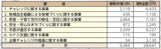 ※使途を分けて寄附される場合がありますので、上記件数と異なります。