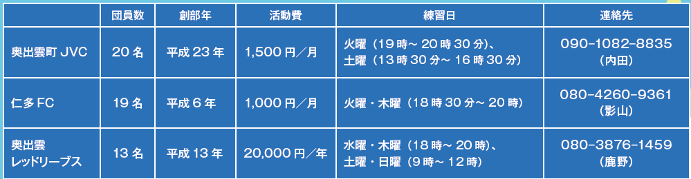 創立15年目を迎える小学生チーム「奥出雲町J5.C」と、部活動の地域移行に伴い今年設立された中学生チーム「奥出雲リアン」。県大会や選抜大会を目指して週2回の練習に励んでいます。