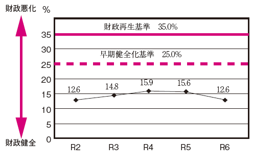 これは、地方公共団体の「財政健全化度」を判断する指標で、一般会計のほか、特別会計や公営企業会計(病院、下水道、水道など)も含めて算出します。