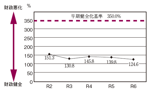 比率は会計ごとに算出し、比率が低いほど財政状況が健全であることを表しています。