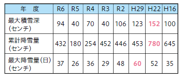 今年も雪の時期がやってきました。昨シーズンの赤名の最大積雪深は94センチ。累計の降雪量は432センチでした。1月9日には、37センチの降雪があり雪かきに追われた記憶があります。近年は少なくなったとはいえ、ドカ雪と呼ばれる一度にたくさん降る雪に翻弄されることも多いような気がします。