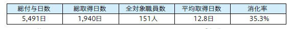 職員の服務の状況 年次有給休暇の取得状況(令和6年1月1日~令和6年12月31日)