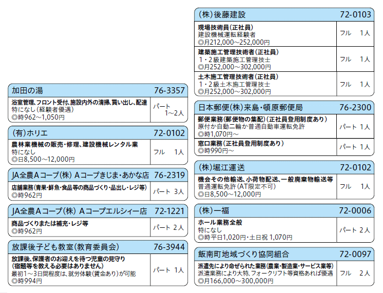 問合せ:飯南町無料職業紹介所(役場まちづくり推進課内)