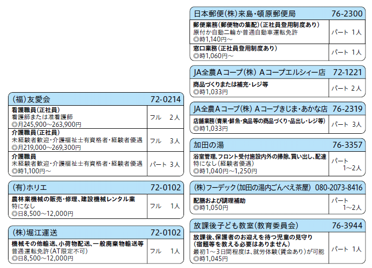 問合せ:飯南町無料職業紹介所(役場まちづくり推進課内)