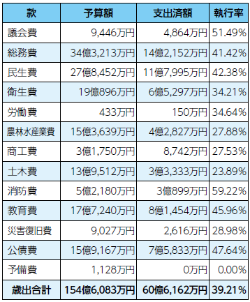 令和7年4月~9月までの財政執行状況を公表します。