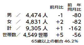 その他 まちのDATA 34/35 前の記事 次の記事 発行日 : 2026年01月15日 自治体名 : 島根県邑南町 広報紙名 : 広報おおなん 令和8年1月号 ■人口の動き(令和7年12月31日) ※住民基本台帳人口(外国人含む)を使用しています。 Tweet シェアする 編集後記 その他のお知らせ(広報おおなん 令和8年1月号)