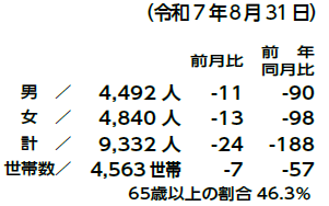 その他 まちのDATA 32/33 前の記事 次の記事 発行日 : 2025年09月15日 自治体名 : 島根県邑南町 広報紙名 : 広報おおなん 令和7年9月号 ■人口の動き(令和7年8月31日) ※住民基本台帳人口(外国人含む)を使用しています。 Tweet シェアする 編集後記 その他のお知らせ
