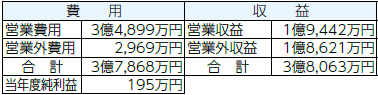 令和6年度の事業活動による経営状況は、収益3億8,063万円、費用3億7,868万円となり当年度純利益195万円となりました。