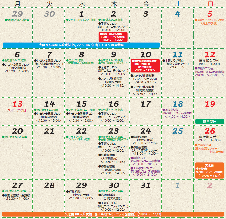 くらし わたしがつくる みんなの「わがとこ」~未来に誇れるまち 西ノ島~2025年10月 23/26 前の記事 次の記事 発行日 : 2025年10月03日 自治体名 : 島根県西ノ島町 広報紙名 : 広報にしのしま 令和7年10月号 ※配食サービスは土日以外実施しています。 Tweet シェアする 誇れるわがとこを 未来へ繋ぐ~人を巻き込む課題解決手法~ 西ノ島町の人口と世帯数