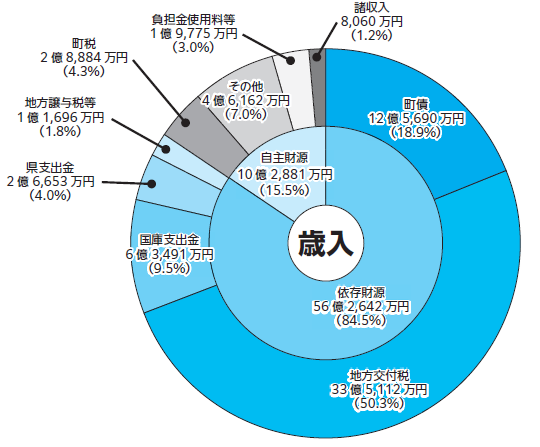 ・自主財源…町が自主的に収入できる財源。町税や使用料等。