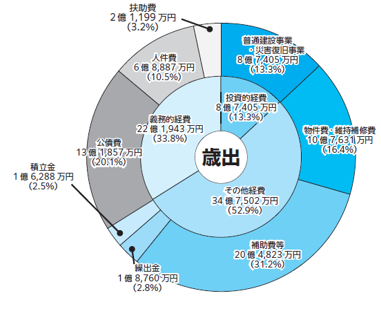 ・投資的経費…道路、橋りょう、公営住宅等の社会資本の整備等に要する経費。