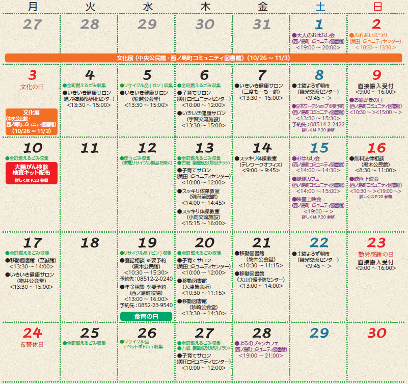 くらし わたしがつくる みんなの「わがとこ」~未来に誇れるまち 西ノ島~2025年11月 32/35 前の記事 次の記事 発行日 : 2025年11月07日 自治体名 : 島根県西ノ島町 広報紙名 : 広報にしのしま 令和7年11月号 ※配食サービスは土日以外実施しています。 Tweet シェアする 便利です!西ノ島情報アプリ(無料) 西ノ島町の人口と世帯数
