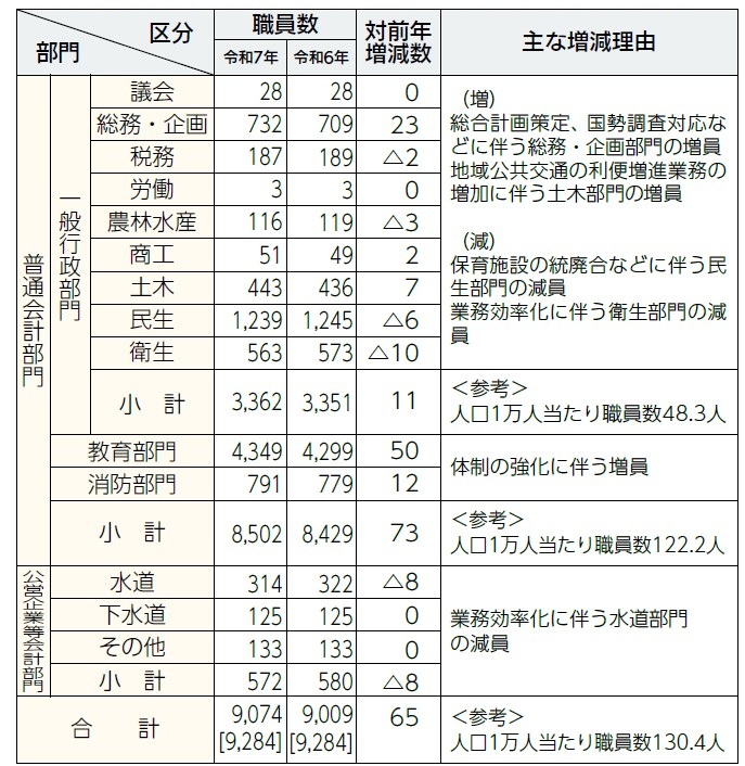 ※職員数は一般職のみ、[ ]内は条例定数の合計