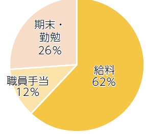 通勤手当:交通機関利用者は6カ月定期券相当額(最高150,000円×6カ月)。自動車などの使用者は距離区分により3,800円~26,400円